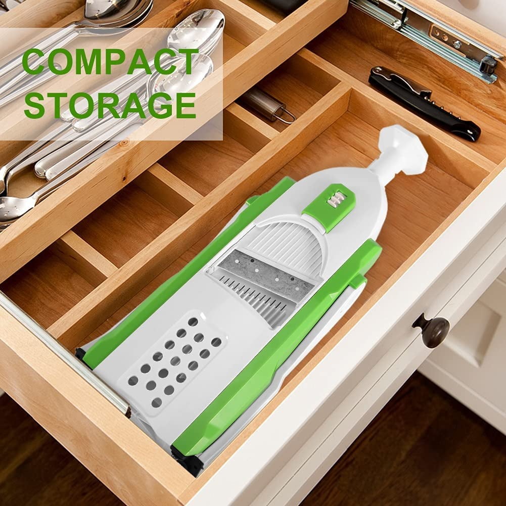 Su excelente diseño te permite cortar tus alimentos manteniendo tus manos y dedos lo más lejos de las cuchillas logrando así, una eficiencia infalible.